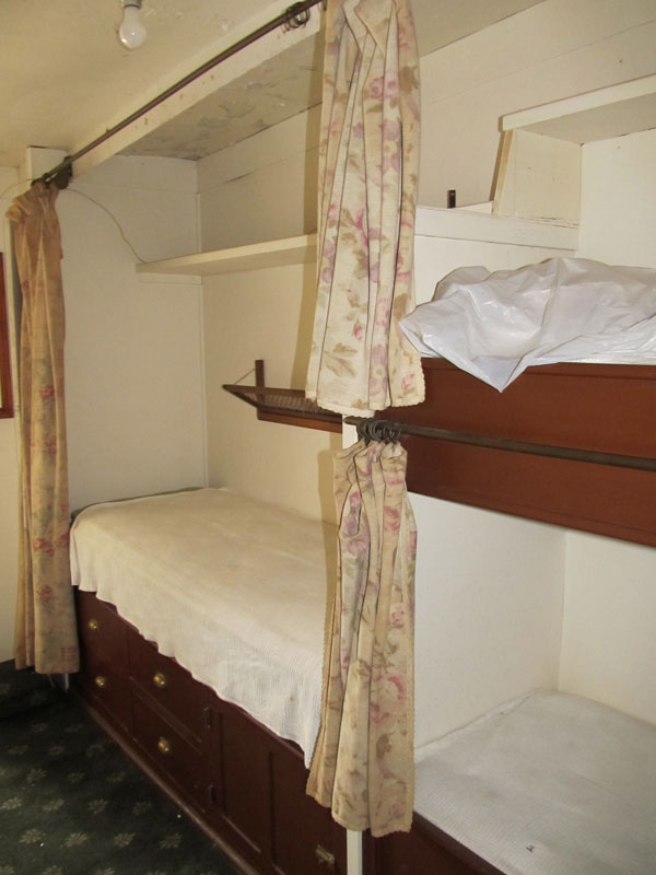 The cabins: The 3,800-ton vessel carried 288 passengers with a crew of 86. “There were 107 rooms of which only seven had ensuite bathrooms. These are the least expensive rooms, and you’ll see that they’re very similar to railway carriages. They had a sink, sometimes bunk beds, sometimes a chesterfield.”