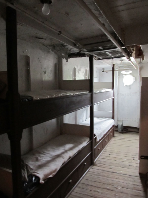 Crew Quarters: “This is where all the waiters, the bellhops and the cooks slept. The waiters slept six to a room and the bellhops had eight to a room. The beds were not very comfortable and they were not very big. So for a guy like me who’s 6 feet, 2 inches, I would always sleep curled up.”