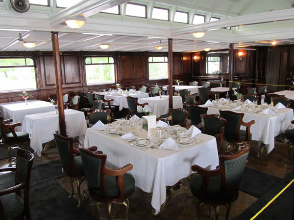 The Dining Room: “This is where I worked. The fellow I worked for, the chief steward, was a guy named Graham. He took me under his wing. Well, his two daughters live in town and they’ve come in with the other volunteers and have scrubbed the floors and cleaned the glass; they’ve taken the tablecloths home and washed them and ironed them. They’ve cleaned the silverware… stuff that’s been in storage for years and years… and set up these tables. It’s all original stuff.”