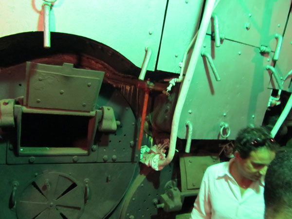 The Boiler Room: “If you’ve seen the movie Titanic, you’ll recognize that this is exactly the same as you would have seen on the Titanic. They were made by the same boilermakers that made the boilers for Titanic. As the coal turned into charcoal, they’d shovel it out and then flush it out into the lake. These guys were big, muscular men. On the last night that I worked on the ship, they invited me to work a four-hour shift, shoveling. I did it just to say that I’d done it… four hours is a long time.”