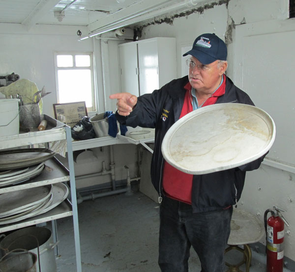 The Cargo Deck: “We could carry up to 40 automobiles… they would put them all in here and then tie them down so they wouldn’t move while the ship went. Our long-term goal is to make this a community area, once the docks are finished and we ballast it to the proper level. All of these doors will come out and we’ll put glass in so there’ll be lots of light down here. We might use it for a Saturday farmer’s market, or antique shows, or anything that would attract the public.”